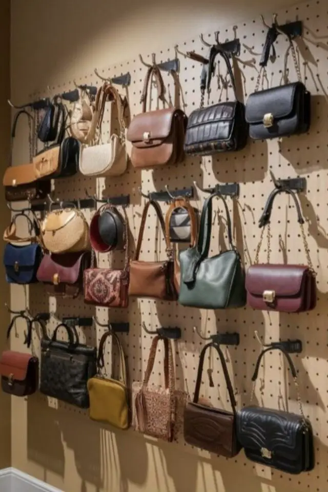 04 • Ranger les sacs à main grâce à un pegboard, une solution modulable