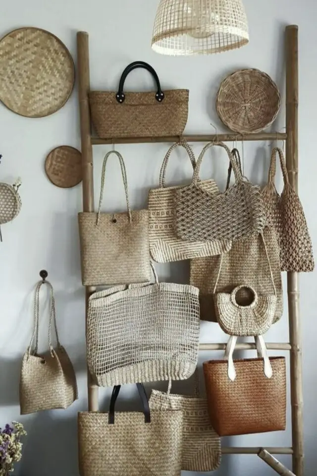 09 • Une déco bohème dans l'entrée grâce aux sacs tressés