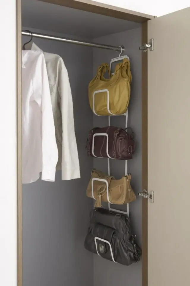 Il y a de nombreuses solutions de rangement pour tirer profit de la penderie. Des rangements avec une tête de cintre pour les suspendre facilement. Et dans ces solutions, certaines vous aident à ranger les sacs à main. Avant de ranger les sacs dans la penderie, je vous conseille de les nettoyer. Même s'ils ne semblent pas sales à première vue, ils vous suivent partout et ils ne doivent pas être si propres que ça. Et comme les sacs rangés seront au contact de vos vêtements propres, autant faire pour qu'ils le restent.