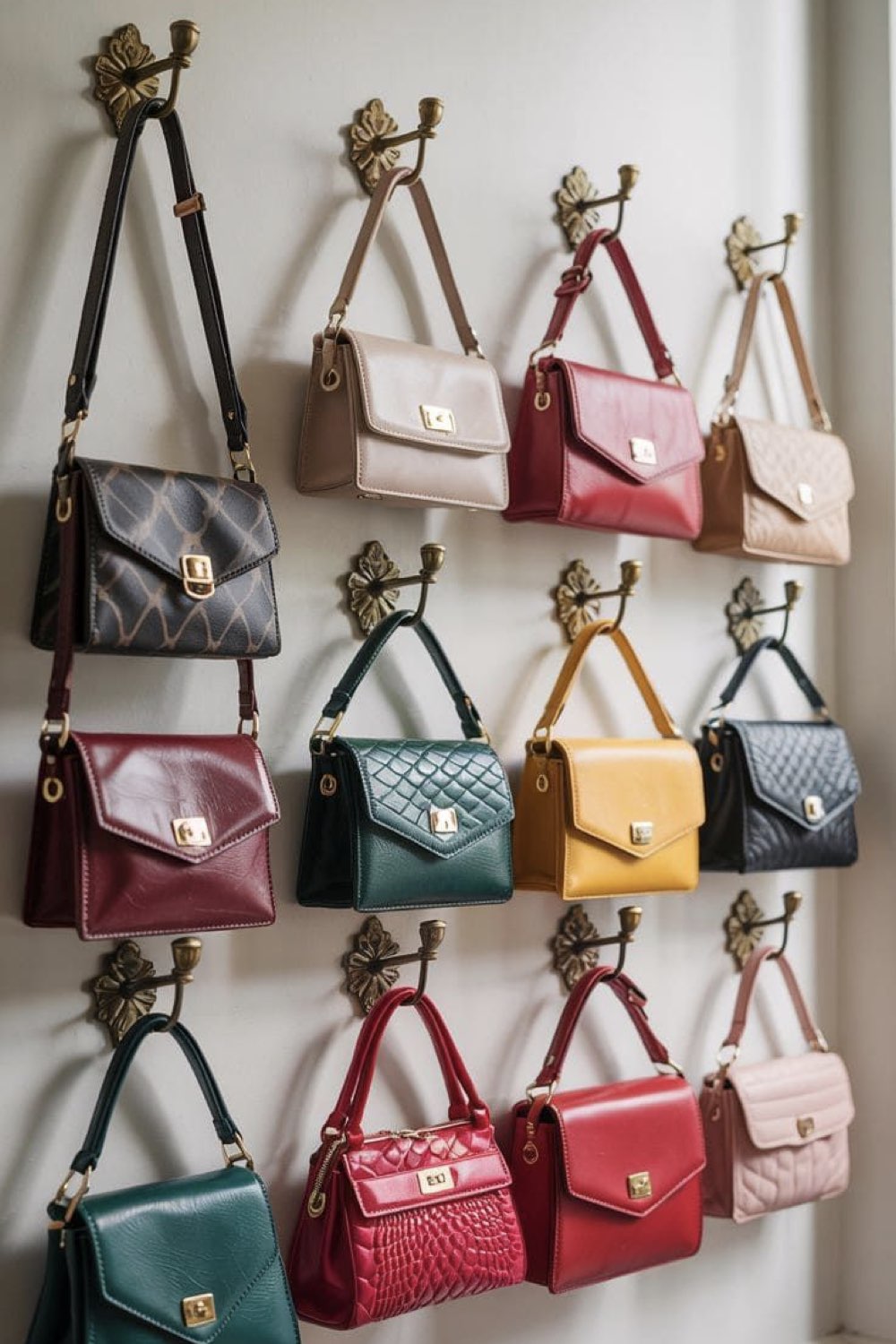 16 • Patères anciennes pour mettre en valeur des sacs vintage