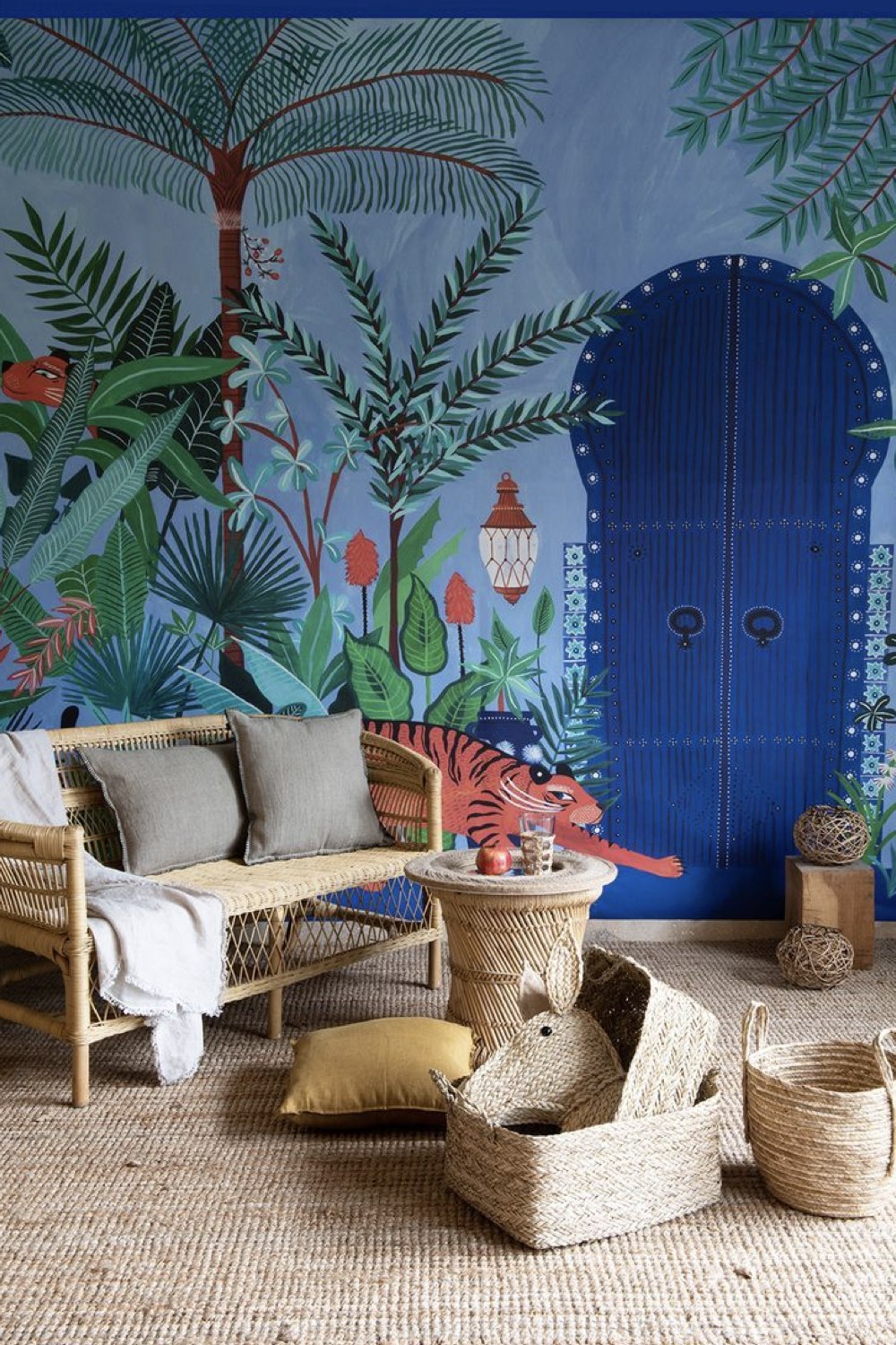 La couleur ne passe pas uniquement par les motifs. Dans un intérieur maximaliste, on va aussi la trouver en plus grande proportion (souvent grâce aux revêtements muraux comme la peinture ou le papier peint). Il va y avoir un mélange de couleurs. Et pour offrir un côté bohème, pourquoi ne pas chercher du côté des couleurs qui vous font voyager?