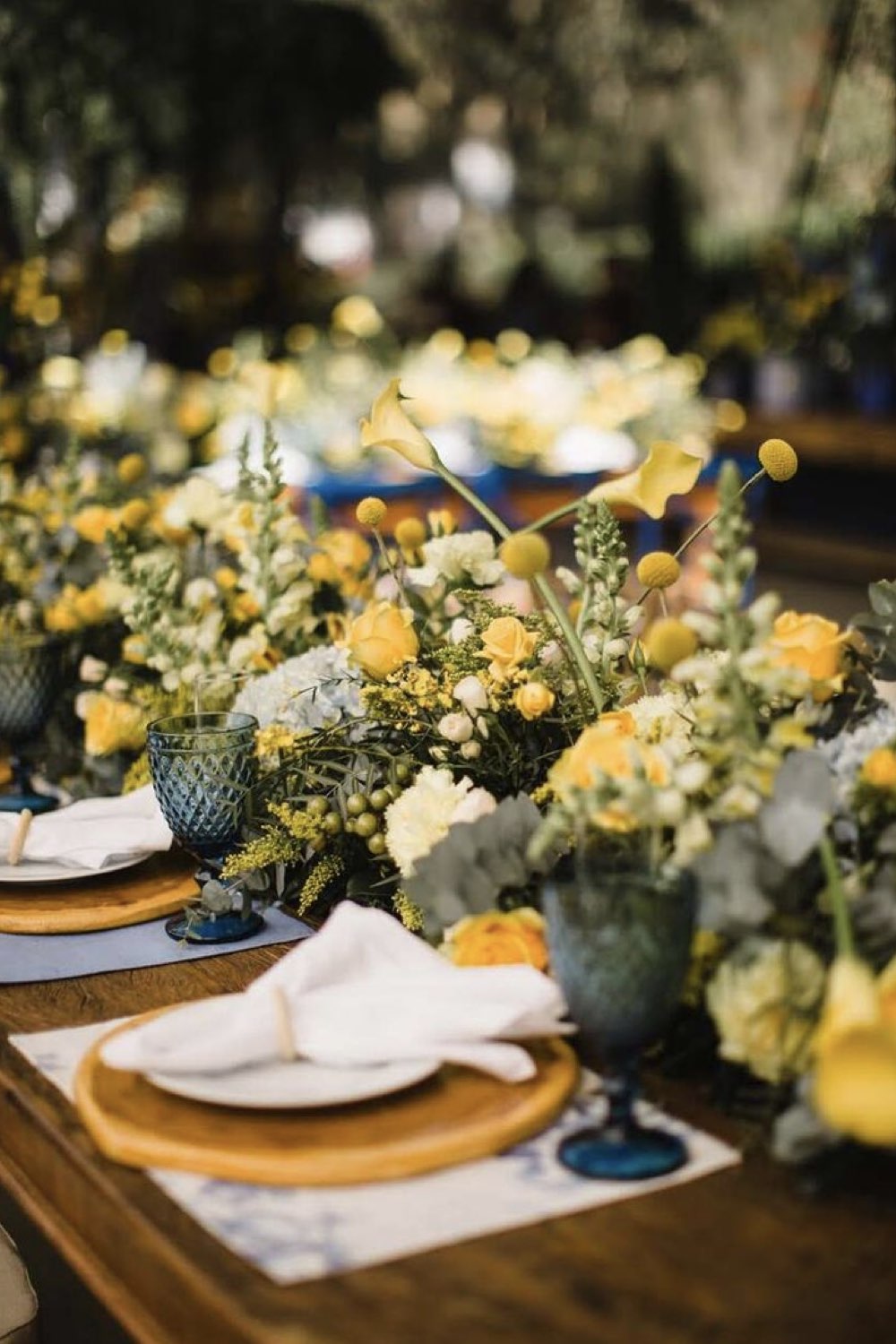 09 • Chemin de table fleuri en jaune, verre à pied coloré de bleu