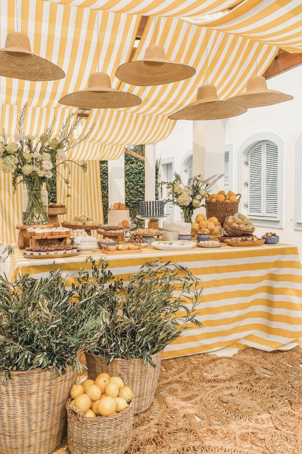 11 • Protéger le buffet et vos invités grâce à des tentures rayées jaunes et blanches
