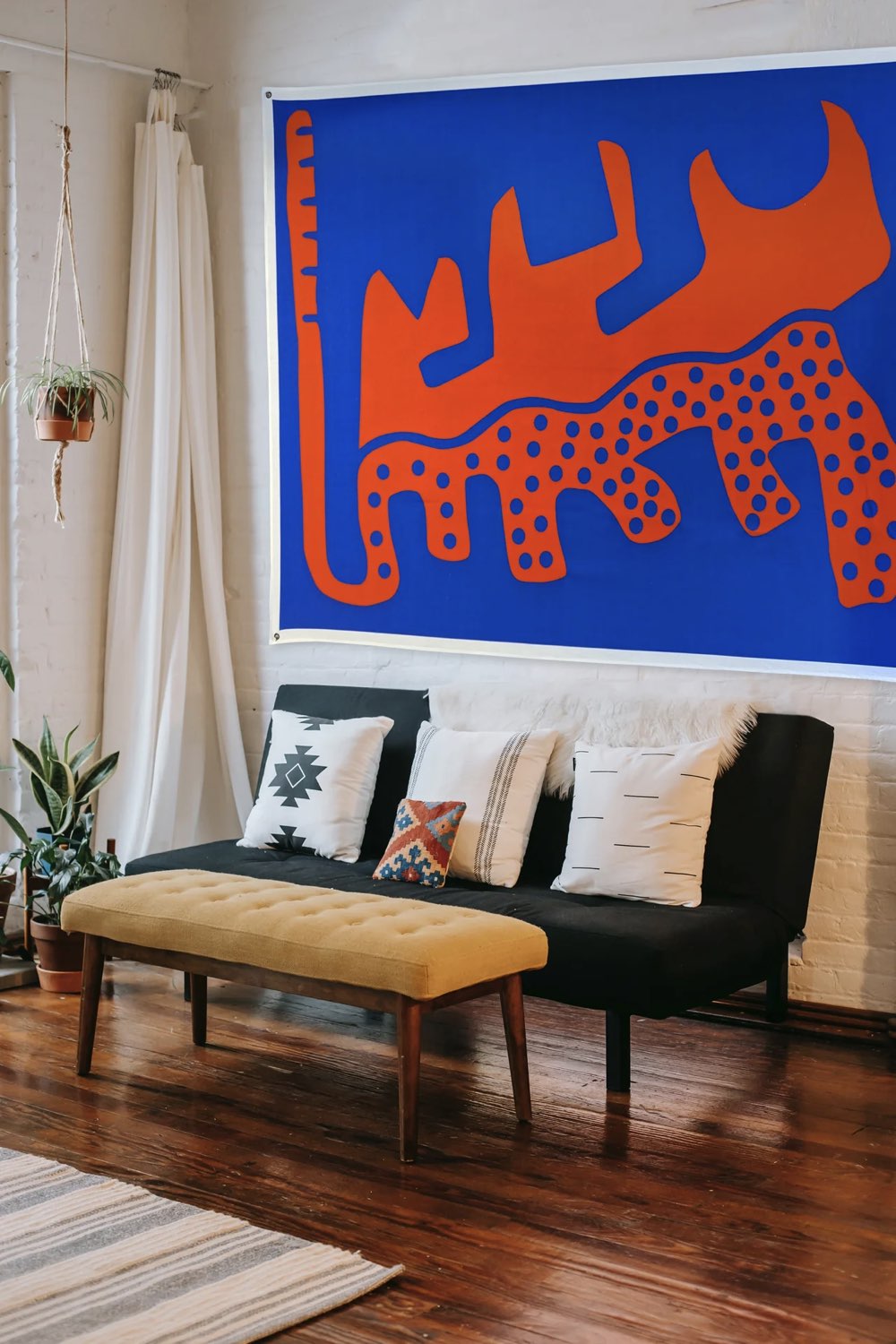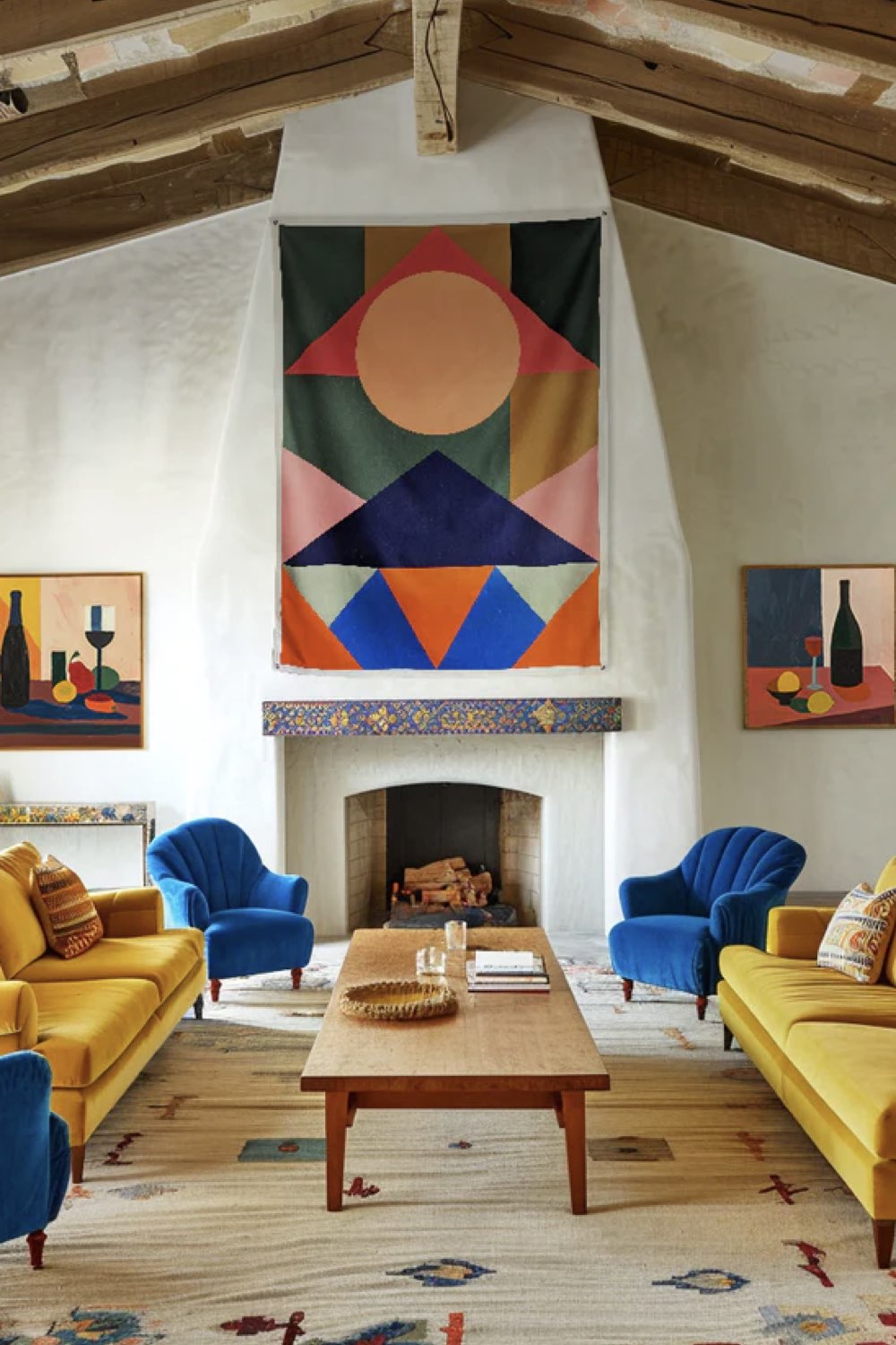Si vous suivez le blog, vous savez que j'aime vous parler de couleur et de décoration murale. Et vous avez probablement compris pourquoi j'aime autant son travail. Ses tentures colorées trouvent facilement leur place au dessus d'un canapé, d'une banquette, de la tête de lit. Ses modèles verticaux habillent un pan de mur ou un mur de grande hauteur (comme dans un hall d'escalier par exemple).
