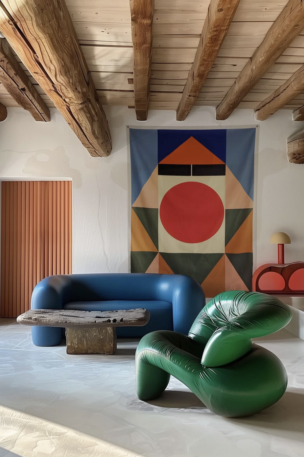 Mais revenons à nos moutons et surtout à l'oeuvre de Grégory B. Ces tapisseries sont elles-aussi à suspendre mais elles ne sont pas tissées, elles sont peintes par l'artiste sur des toiles brutes non tendues. Les designs sont résolument modernes avec une palette de couleurs vibrantes et audacieuses, des motifs simples et captivants. Il a travaillé en collaboration avec Le Bon Marché (Rive Gauche) et Kave Home.