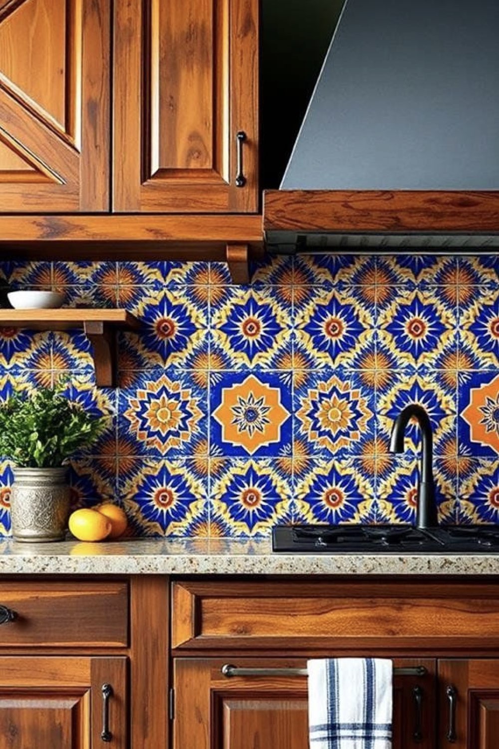 Et pour apporter du motif à votre cuisine à travers les revêtement, vous pouvez toujours piocher dans les carreaux de ciment. Il en existe de très nombreux modèles et certains sont dans des couleurs vibrantes qui collent parfaitement avec l'univers coloré mexicain.