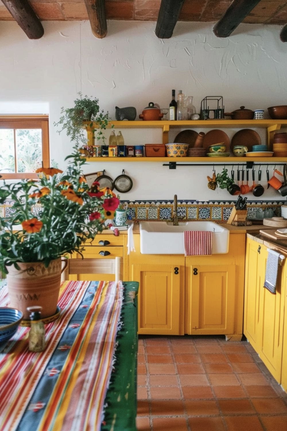 Tout le monde n'a pas forcément envie ou le budget pour rénover la cuisine de A à Z. Et le style déco mexicaine est parfait pour donner une nouvelle vie à votre cuisine sans tout changer. Comme ce style est très coloré, on peut facilement repeindre des meubles de cuisine, d'autant plus s'ils sont en bois avec un décor rustique.