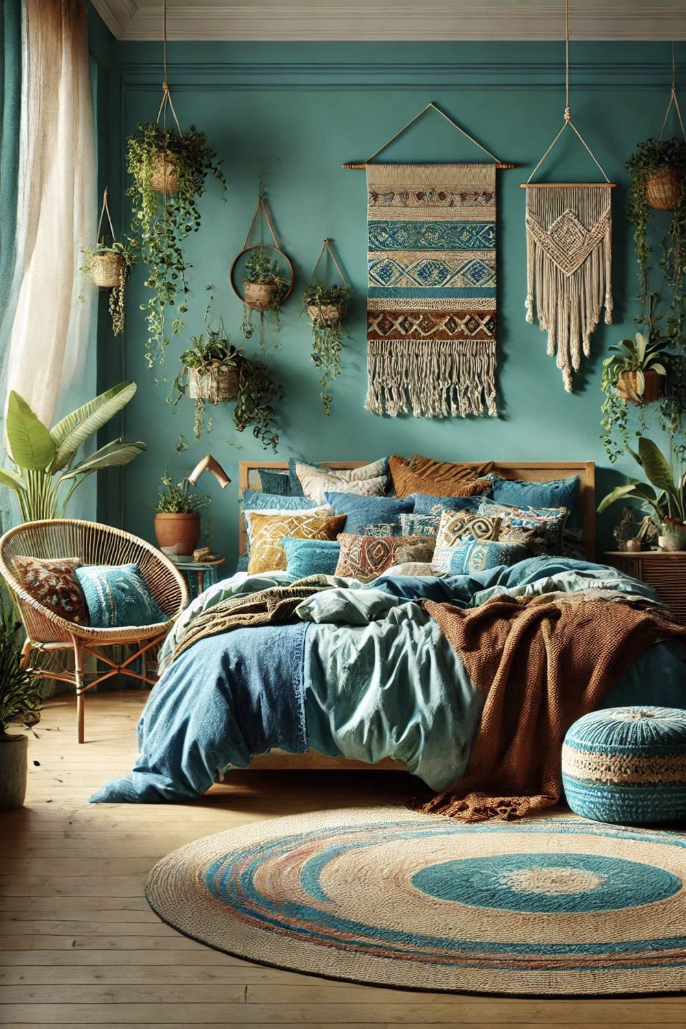 Bleu lagon et matériaux naturels pour une ambiance chaleureuse chez soi