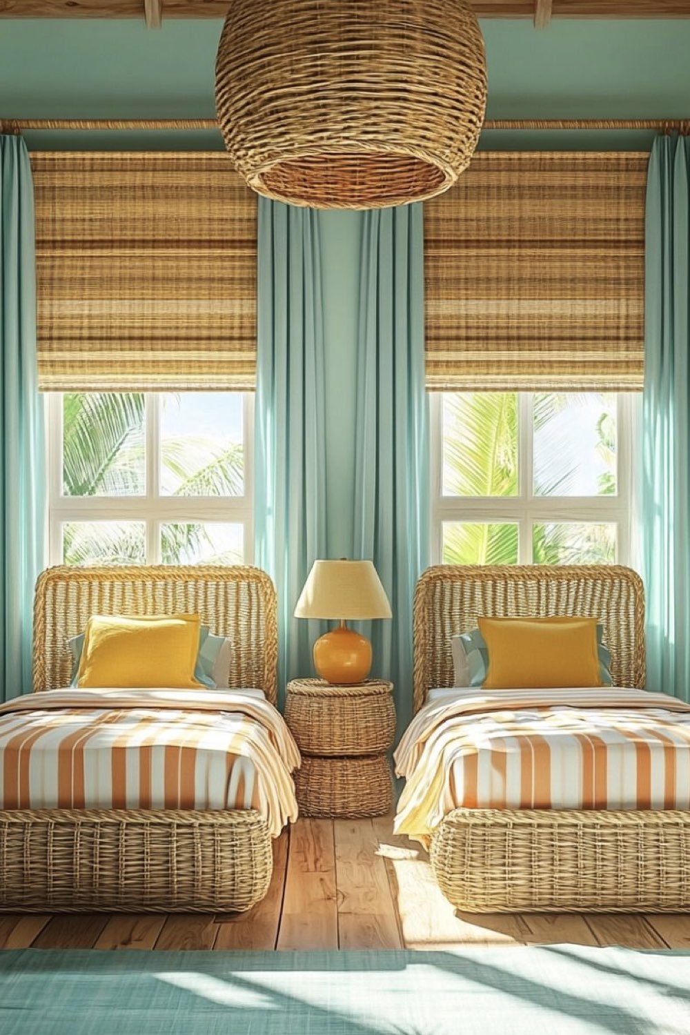 Moodboard déco: intérieur bleu lagon apaisant et chaleureux