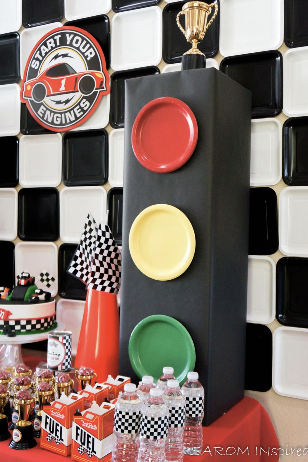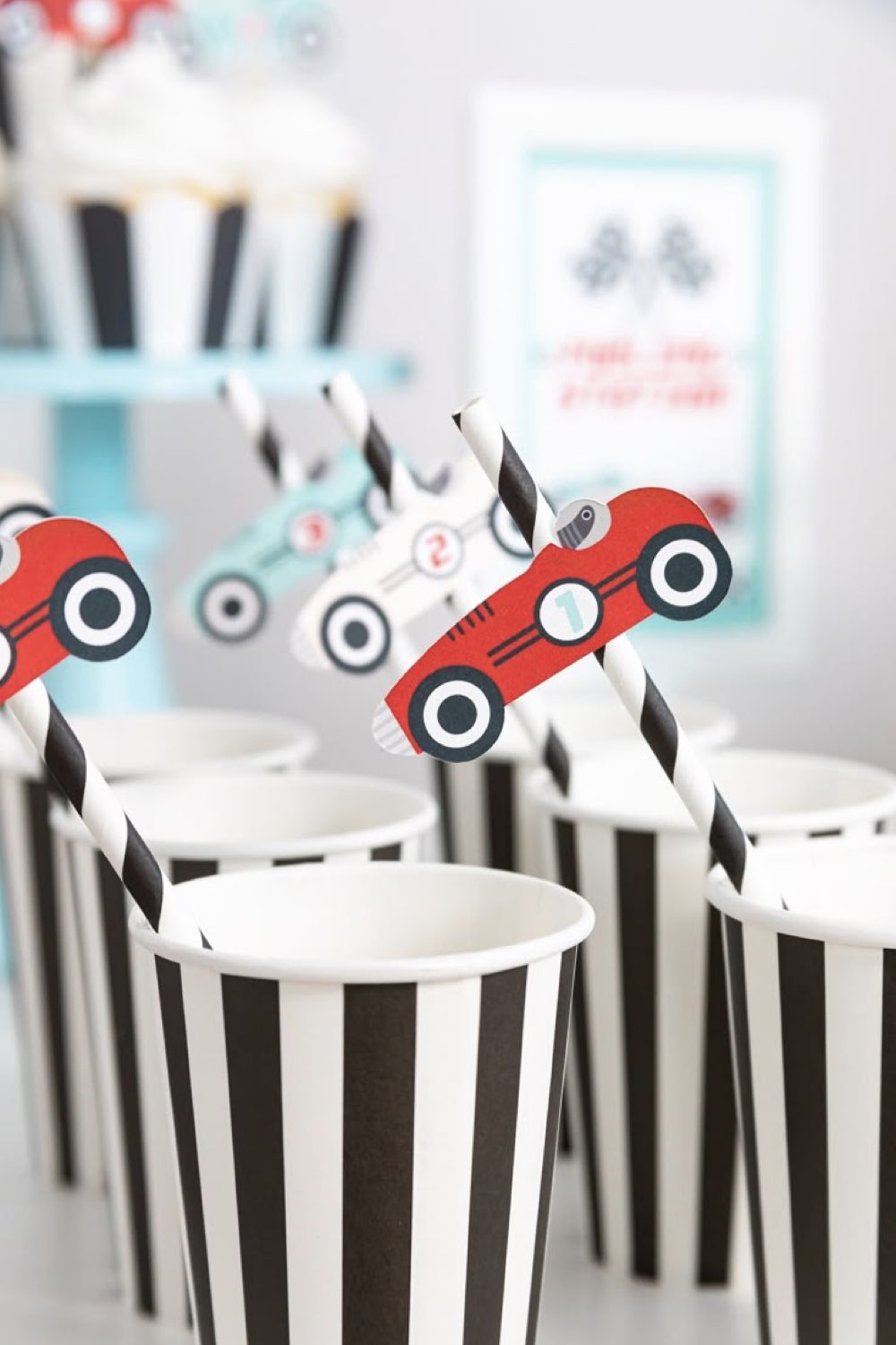 Vous le verrez à travers les inspirations sélectionnées, de nombreuses idées sont accessibles financièrement (elles ne coûtent pas un bras) et accessibles même si vous n'avez pas une âme créative. Un feutre noir et une feuille blanche sont la base d'un damier de course. Des étiquettes à imprimer et à découper pour les yeux du célèbre personnage Pixar... Rien de compliqué là-dedans et ça rend ce thème d'anniversaire encore plus sympa!