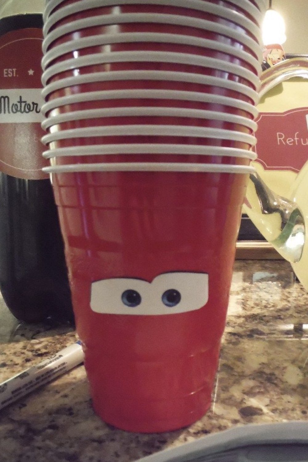 • customiser des gobelets rouges avec des yeux Cars