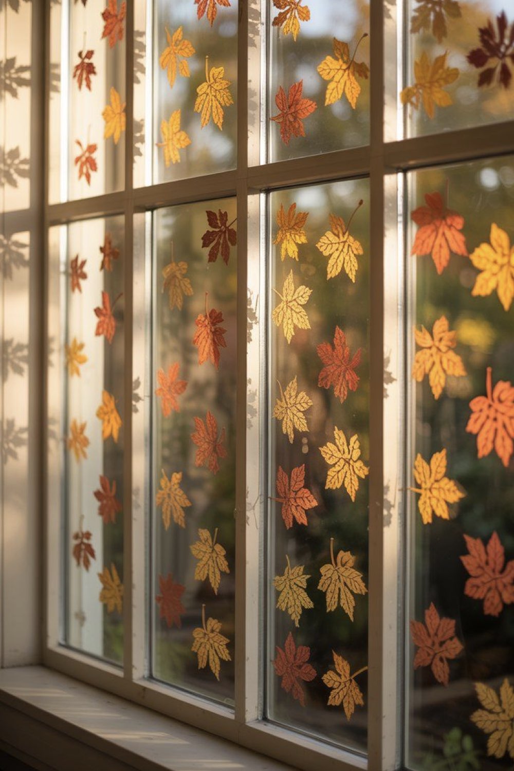 Peindre des feuilles aux couleurs automnales dans les angles d'une fenêtre