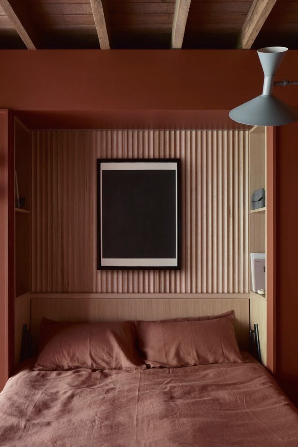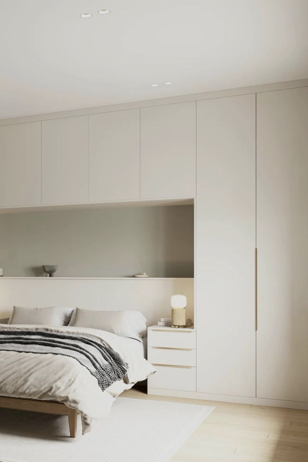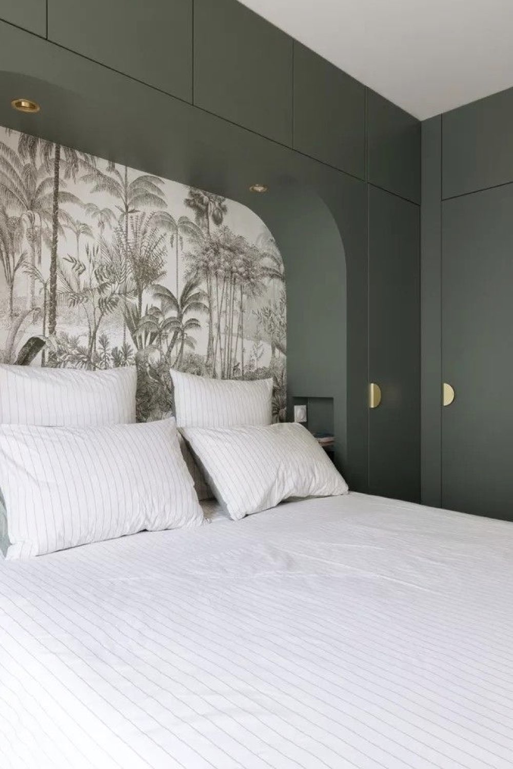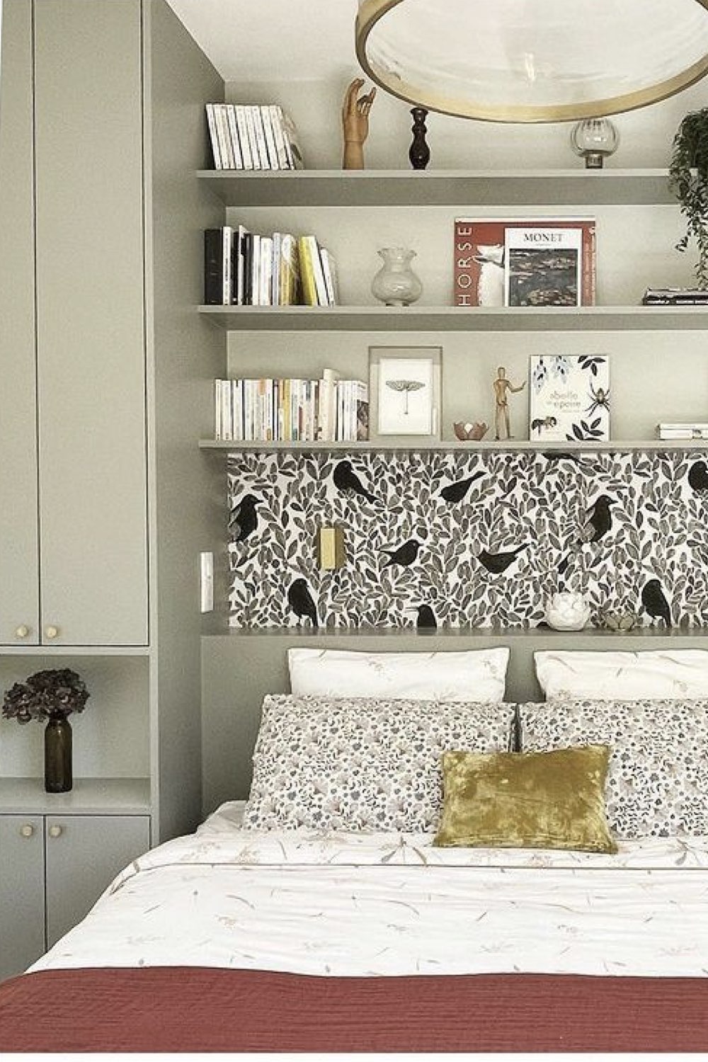 Autre petit plus qu'il est possible d'intégrer dans votre aménagement: une niche pour remplacer la table de nuit ou pour un appoint de rangement. Je pense notamment aux passionné•e•s de lecture qui ont toujours des PAL sur la table de nuit. Une niche avec plusieurs étagères permet de ranger les livres facilement.
