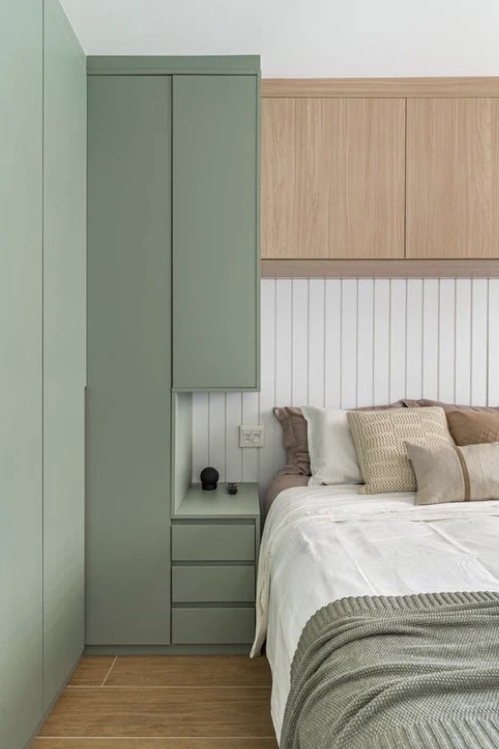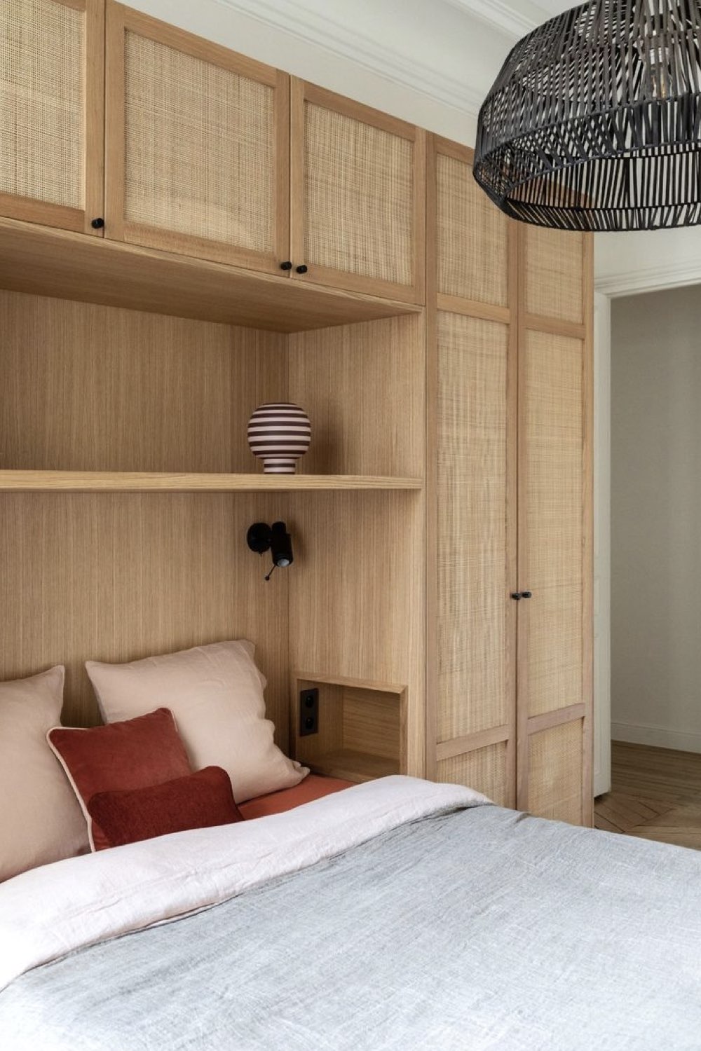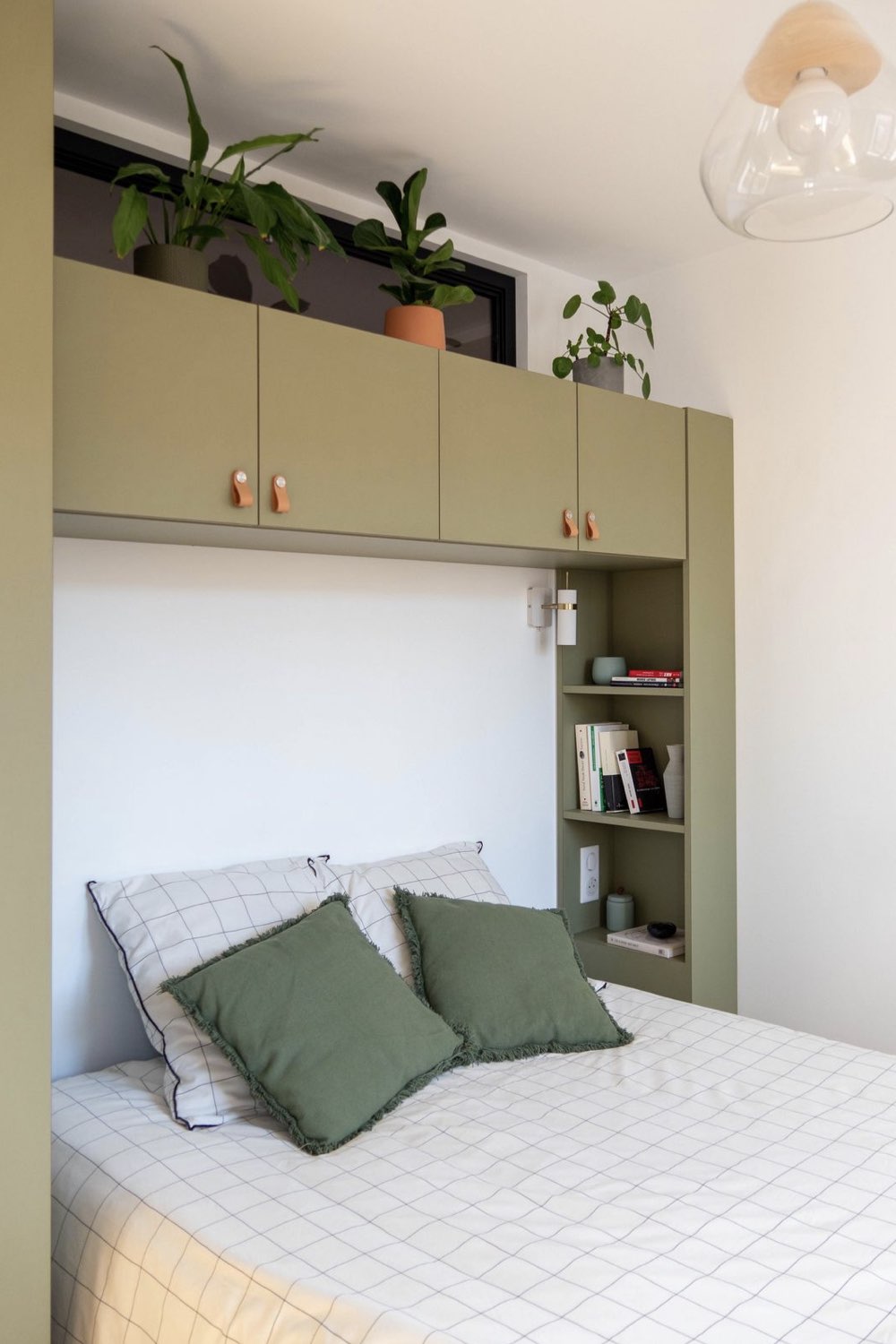 Caissons de rangement au dessus du lit