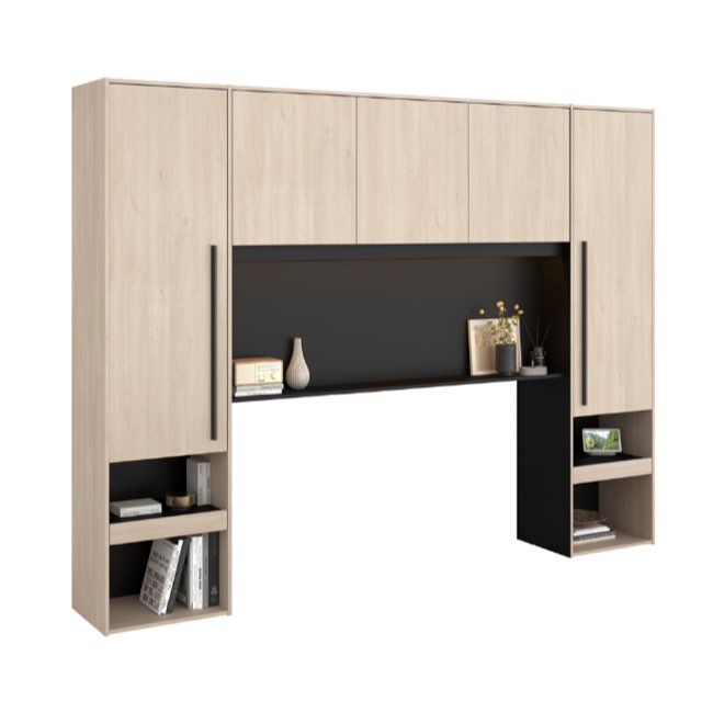 - l'espace au dessus du lit généralement composé de caissons fermés avec des portes