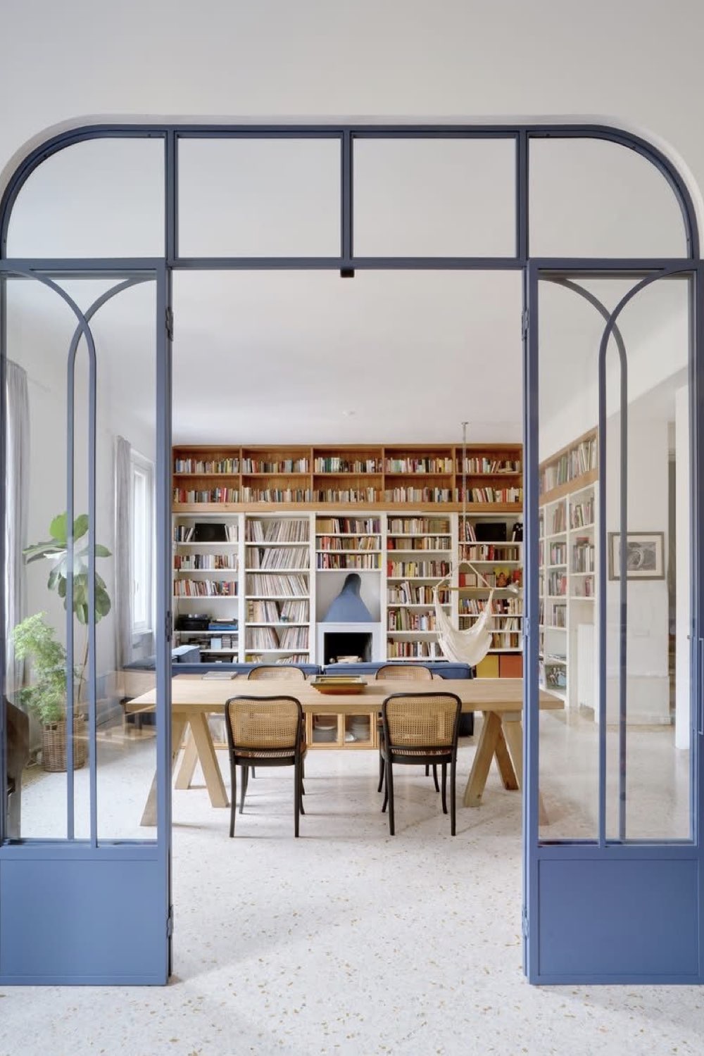 Dernière idée pour apporter une forme de structure à votre espace salon salle à manger: la porte vitrée. Elle a de nombreux avantages: