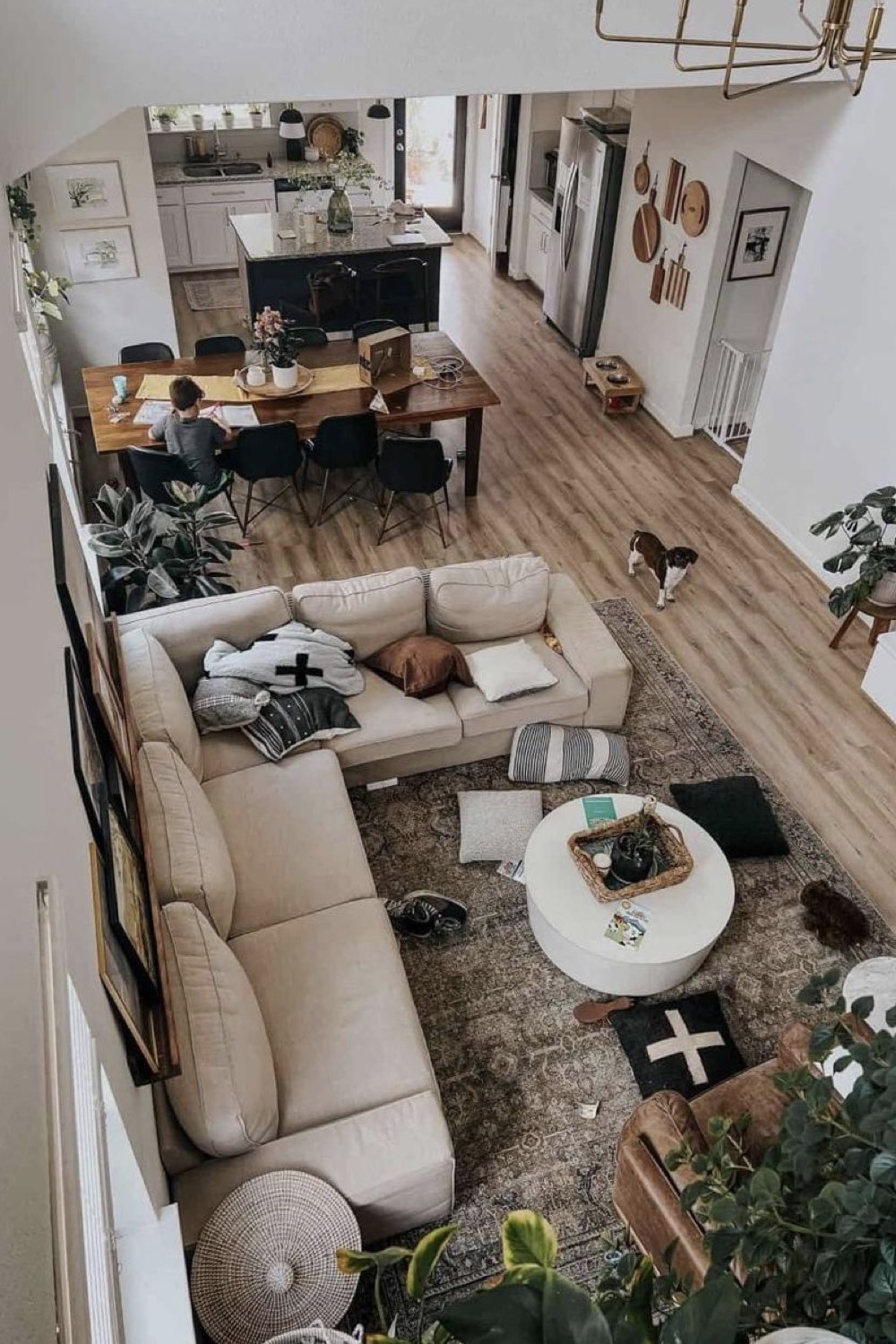 A lire aussi: Comment placer le canapé dans le salon? Où le positionner? Cet article ne se concentre pas sur les pièces de vie ouvertes mais vous aurez plus d'exemples et d'idées pour placer votre ou vos canapés dans l'espace.