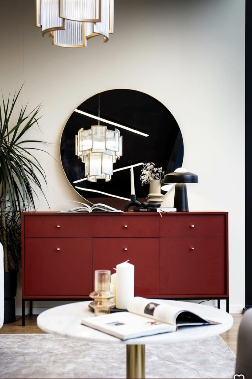 Créer un point focal dans le salon grâce à un buffet bordeaux