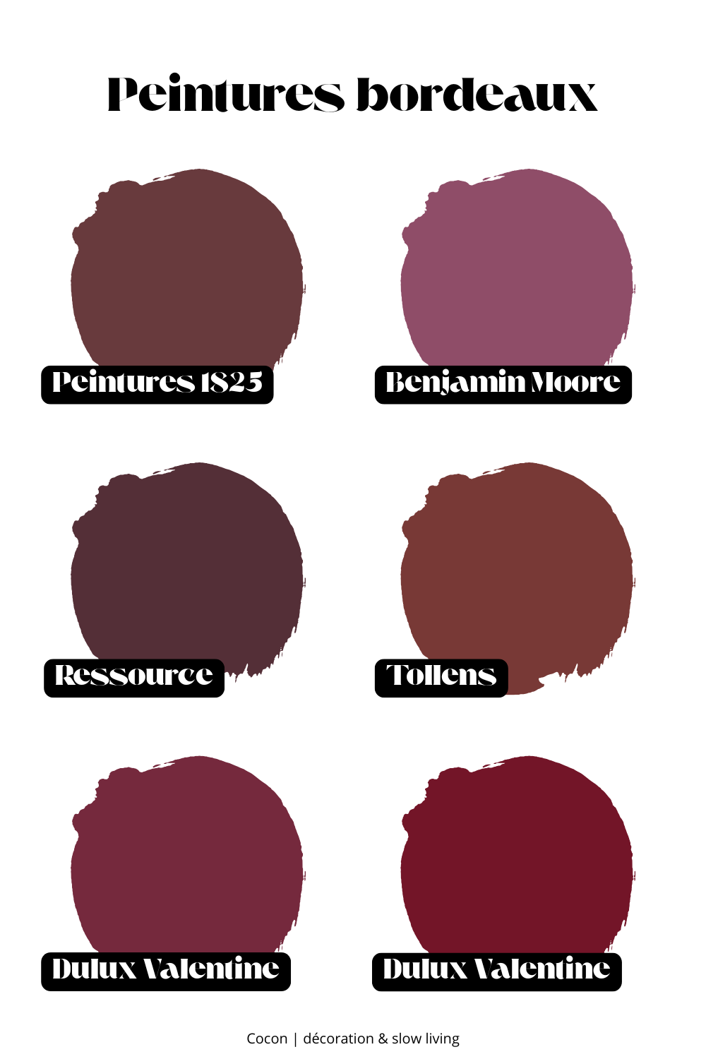 Si vous envisagez de peindre du bordeaux chez vous, voici 6 nuances de peintures vers lesquelles vous tourner pour mener à bien votre projet: