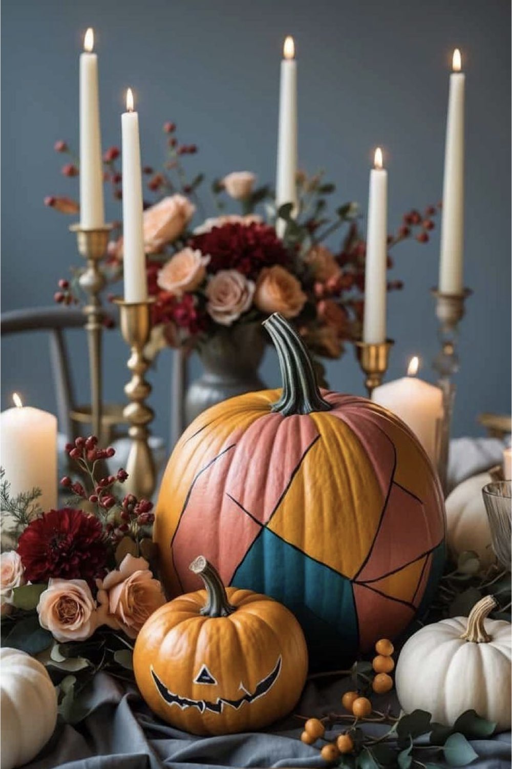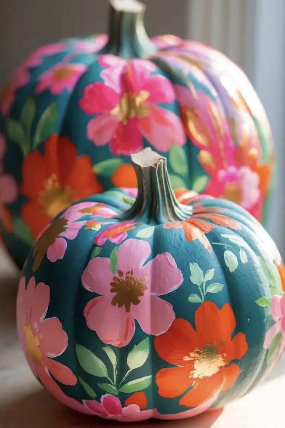 Décor floral chic peint sur une citrouille