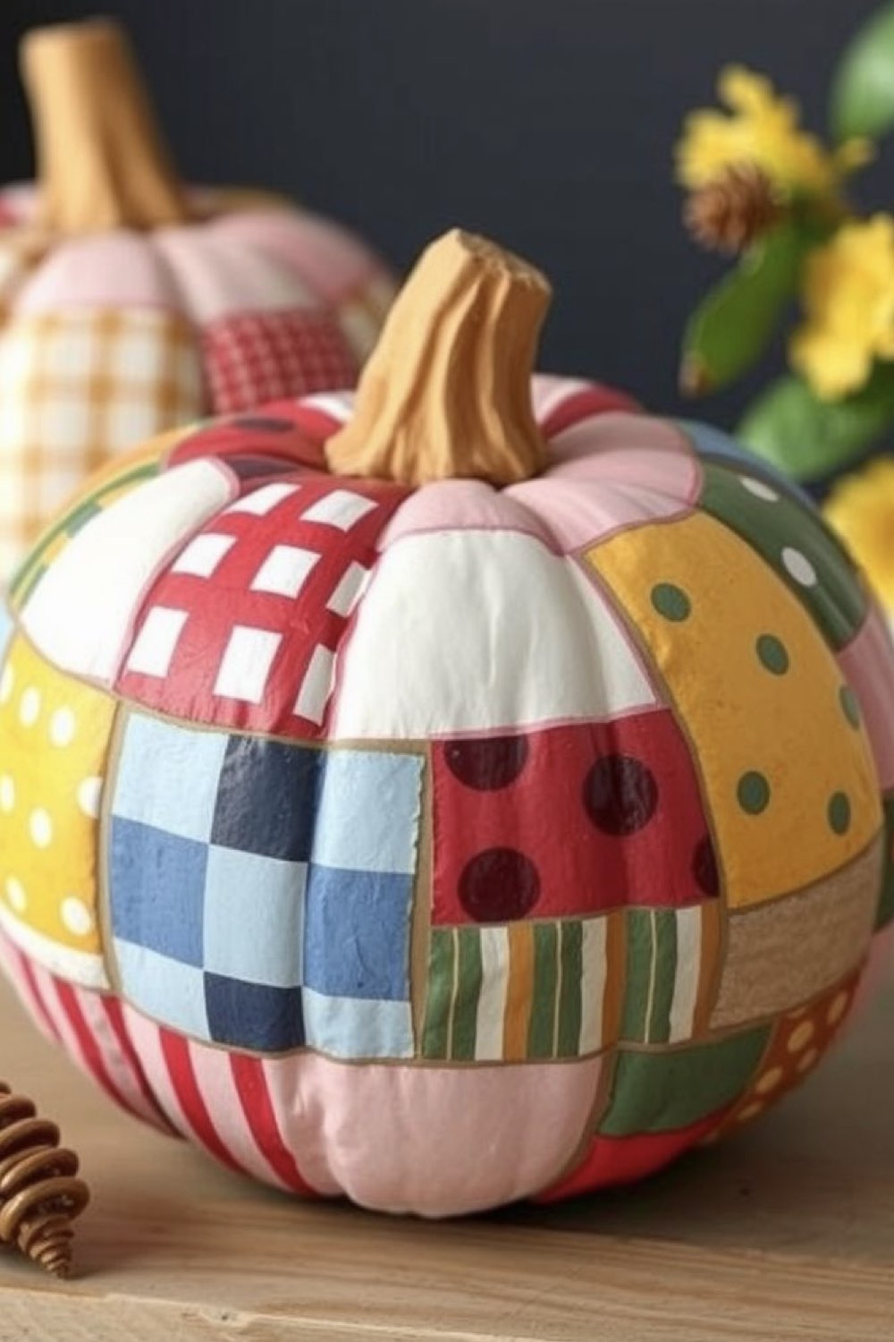 Une citrouille peinte en patchwork
