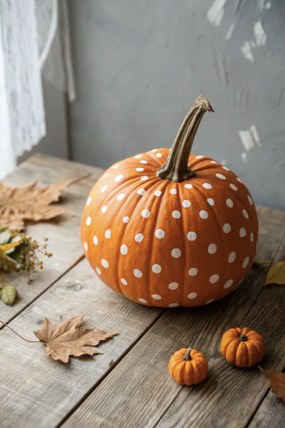 Bricolage facile: peindre de petits pois blancs sur une citrouille