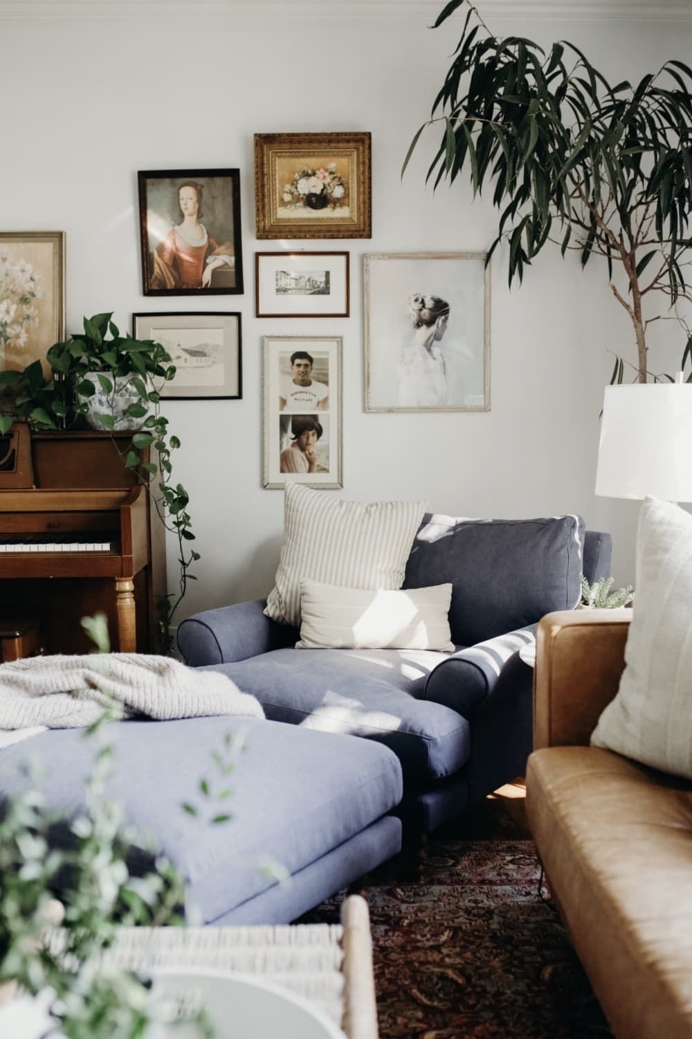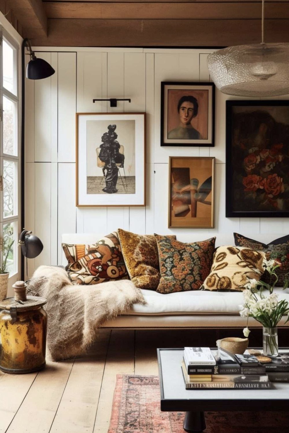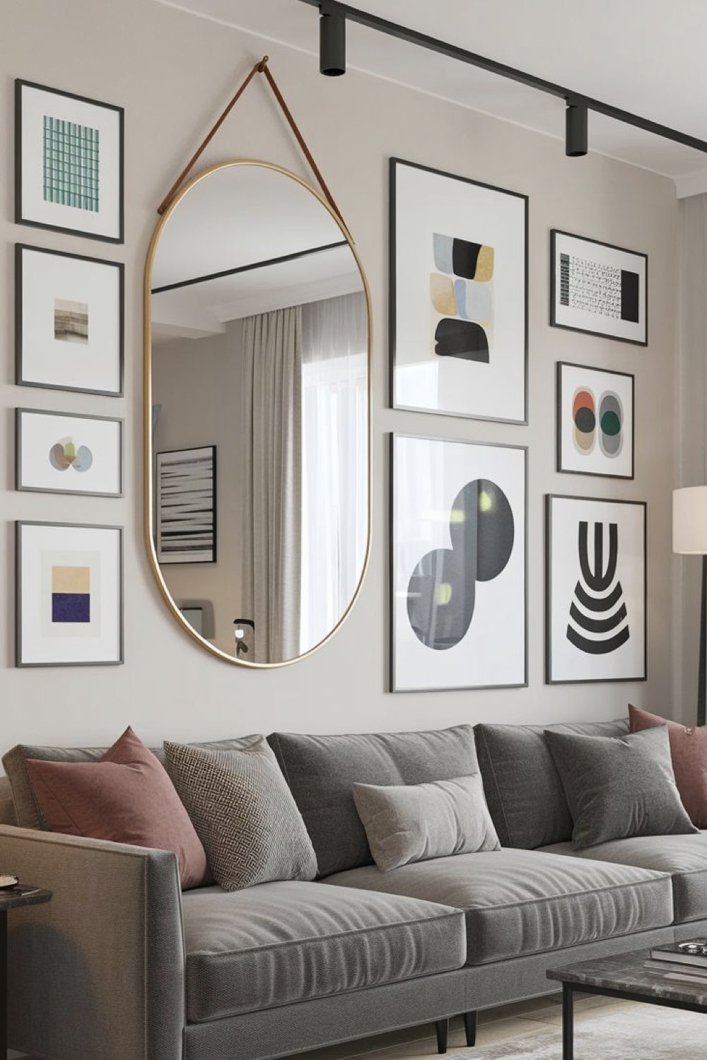Décorer les murs du salon à l'aide de tableaux, miroirs et cadres