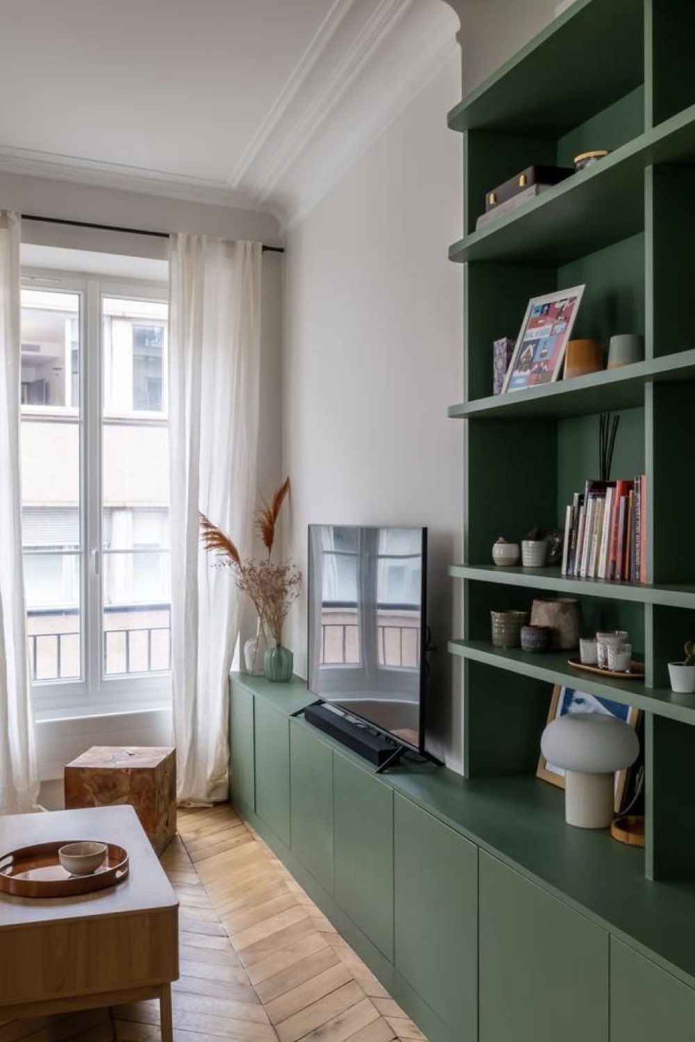 décoration murale télévision salon meuble sur mesure bibliothèque rangement appartement