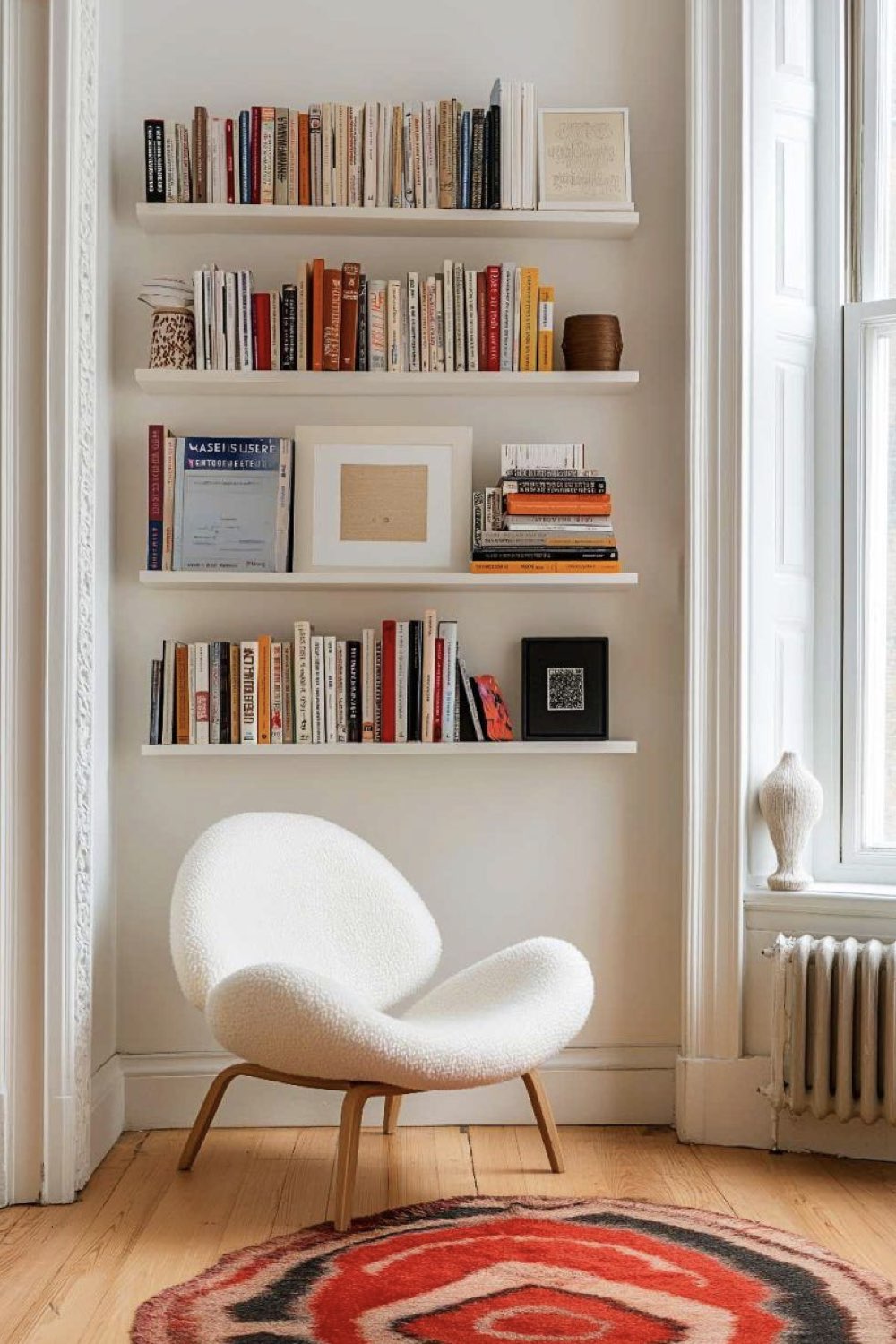 décoration murale salon pan de mur étagère rangement livre mini bibliothèque