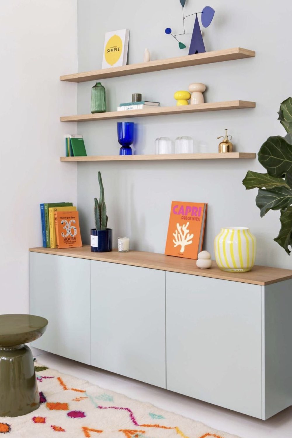 Il y a quelques semaines, sur Threads, j'évoquais à la question des étagères au dessus du lit. Et je ne suis pas la seule à aimer moyennement l'idée d'avoir quelque chose au dessus de la tête quand je dors. Il n'y a pas que dans la chambre où les étagères murales peuvent sembler dérangeantes.