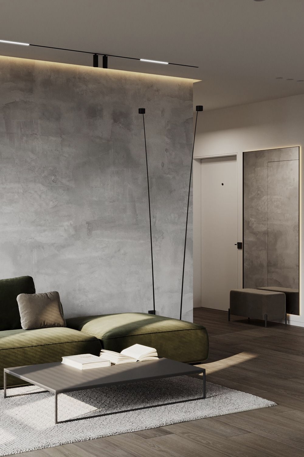 revêtement murale déco de salon enduit décoratif béton ciré ambiance moderne et minimaliste