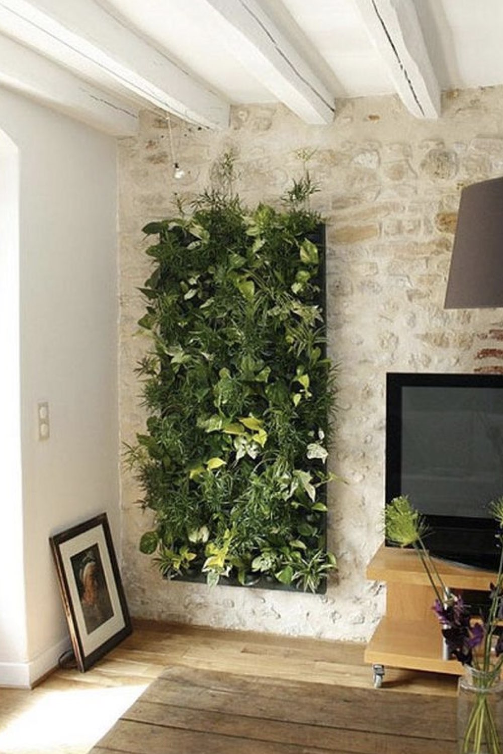 revêtement murale déco de salon mur végétal pan de mur à côté de la télévision idée