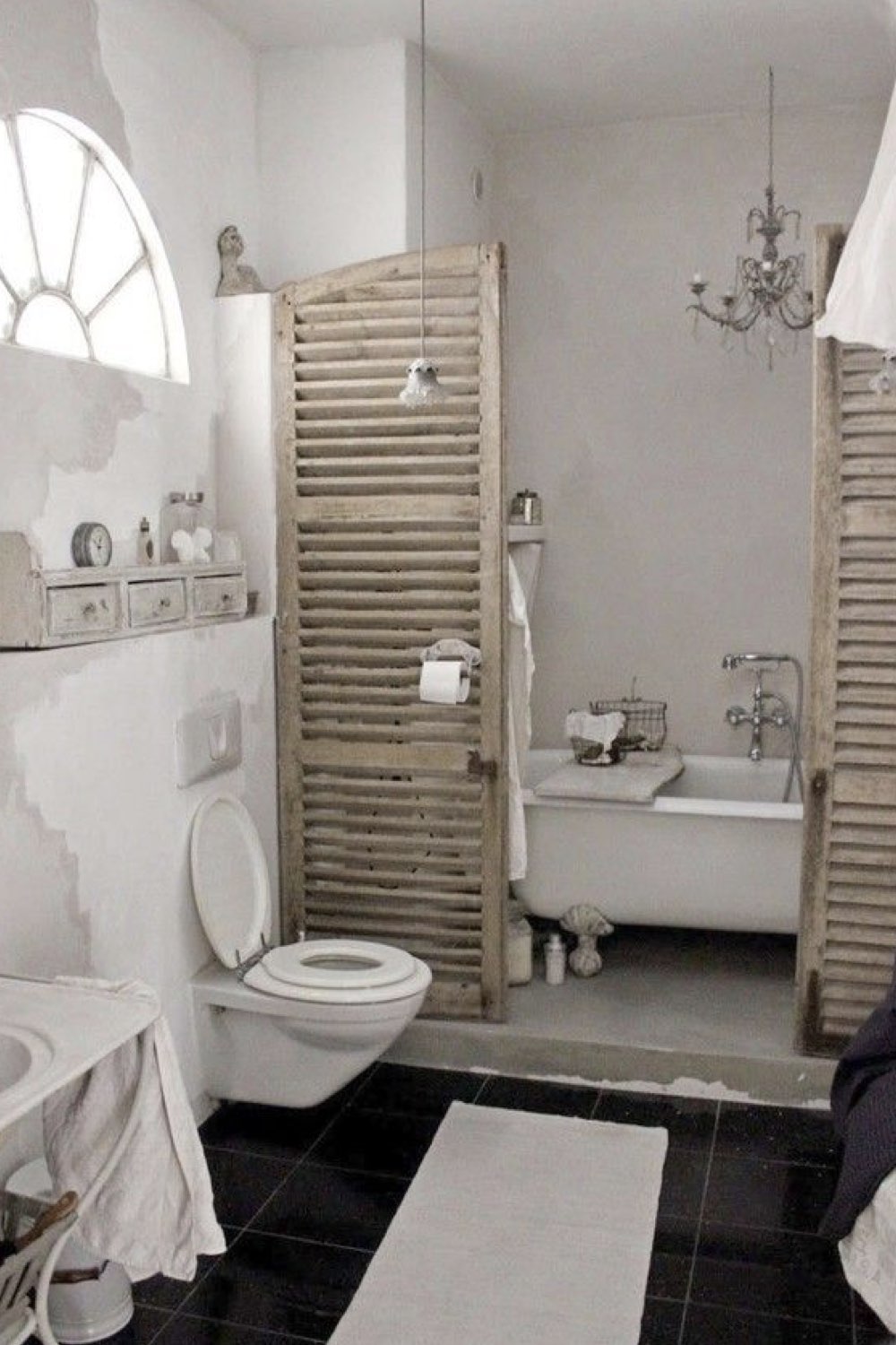- Anciens volets qui servent de claustras pour cacher la baignoire