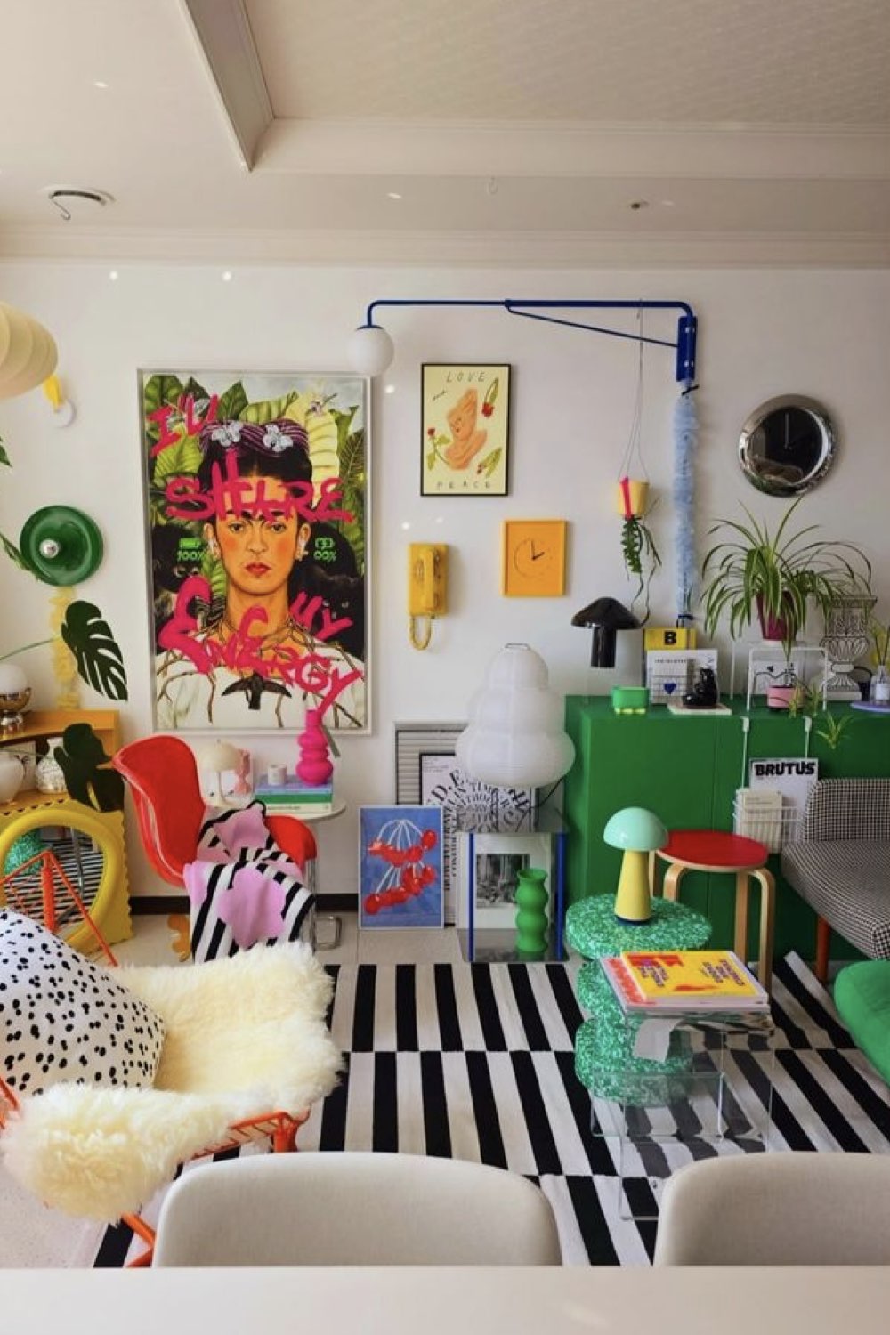 Le mix des couleurs et des motifs peut faire penser au style maximaliste. Et il y a une forme de maximalisme dans le dopamine décor. Il y a néanmoins des différences entre les deux types d'ambiance. La première différence concerne le choix des couleurs. Le dopamine déco va surtout se concentrer sur des couleurs vives et éventuellement une touche néon / fluo. Ce n'est pas toujours le cas pour le maximalisme.