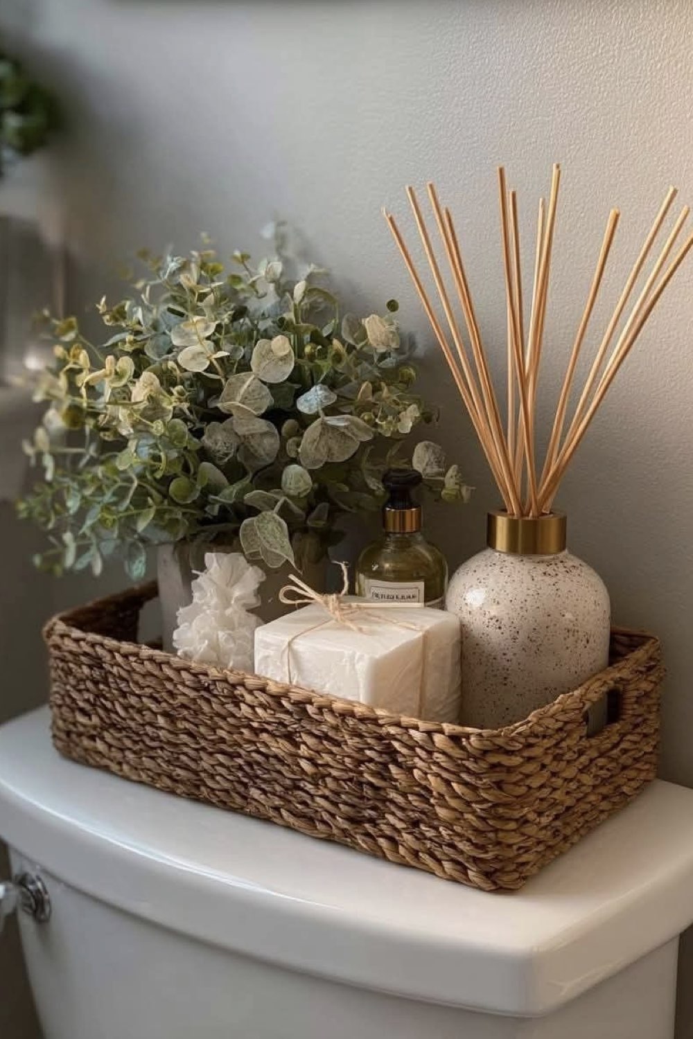 - minimum vital pour vous maquiller (dans un petit panier) + bouteilles de parfum