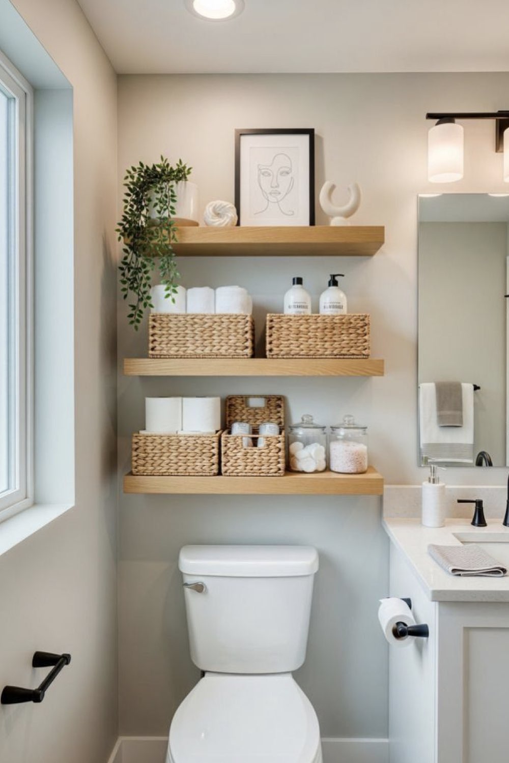 Optimiser l'espace au dessus des toilettes pour plus de rangement