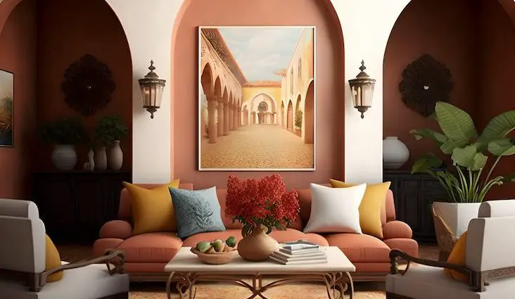 interieur estival couleur exemple salon séjour salle à manger pièce de vie peinture textile meuble