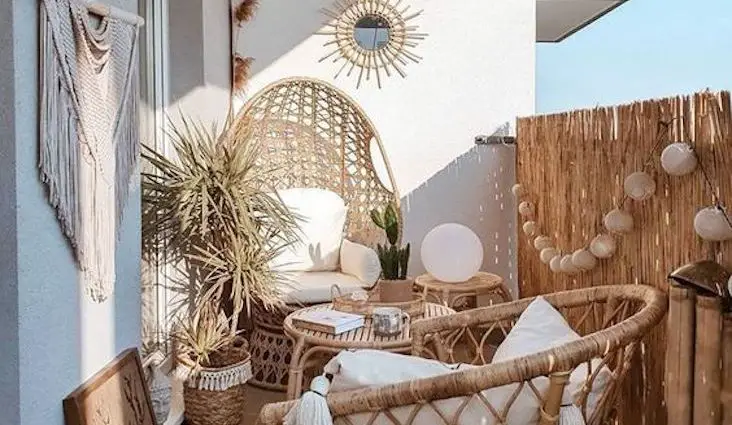 deco boheme petit balcon happy small living mobilier rotin naturel extérieur appartement