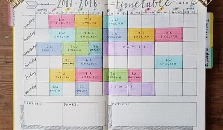bullet journal prog primaire college lycee organisation de travail exemple couleur calendrier