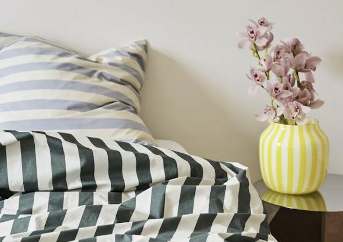 Une touche moderne et colorée dans la chambre avec le linge de lit à rayures